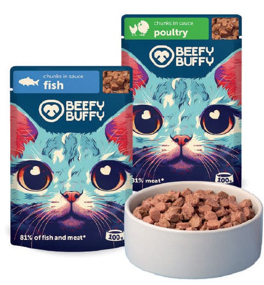 Pilnvērtīga konservēta barība pieaugušiem kaķiem, kas piedāvā gardus un sulīgus gaļas gabaliņus mērcē. Tie satur gaļu un dzīvnieku izcelsmes produktus -81%, nodrošinot pilnvērtīgu un sabalansētu uzturu jūsu kaķa veselībai. Gaļas gabaliņi veido vismaz 46%. Sastāvdaļas: • 45% vistas gaļa * 24% liellopu gaļa *8% tītara gaļa *4% aknas • Graudaugi • Nesatur kaulu miltus – tikai augstas kvalitātes dzīvnieku izcelsmes sastāvdaļas Uztura bagātinātāji uz 1 kg barības: • taurīns 3a370)-225mg;vitamīni:D3(38671) 75SV(MJ),E(3a700)-22,5mg,B1(38821)-2,2mg,B2(38251i)-1,6mg;B6(38831) 1,2mg,B12-11,2mg,niacinamīds(3a880)-30mg, kalcija D-pentotenats(3a841) 3,7mg,folskabe(3a316)-0,4mg,biotīns(3a880) • Mikroelementi: dzelzs(36103) 13,5mg,varš(36405)-1,0mg,silīcijs(E551a)-15mg,cinks(3b605) 12,5mg,mangans(3b502)-1,0mg,jods(3b202)-0,22mg. • Tehnoloģiskās piedevas: guāra sveķi, dekstroze Analītiskais sastāvs: • Kopproteīns: 7,7% • Koptauki: 3,8% • Koppelni: 1,3% • Kopšķiedra: 0,3% • Mitruma saturs: 82% Enerģētiskā vērtība (100 g barības): 371,5kJ / 88,7 kcal Ikdienas barošanas ieteikumi: • Barošanas devas skatīt tabulā uz iepakojuma. Barība jāpasniedz istabas temperatūrā. Kaķim vienmēr jābūt pieejamam svaigam dzeramajam ūdenim. Visu šķirņu pieaugušiem kaķiem no 1 gada vecuma. |