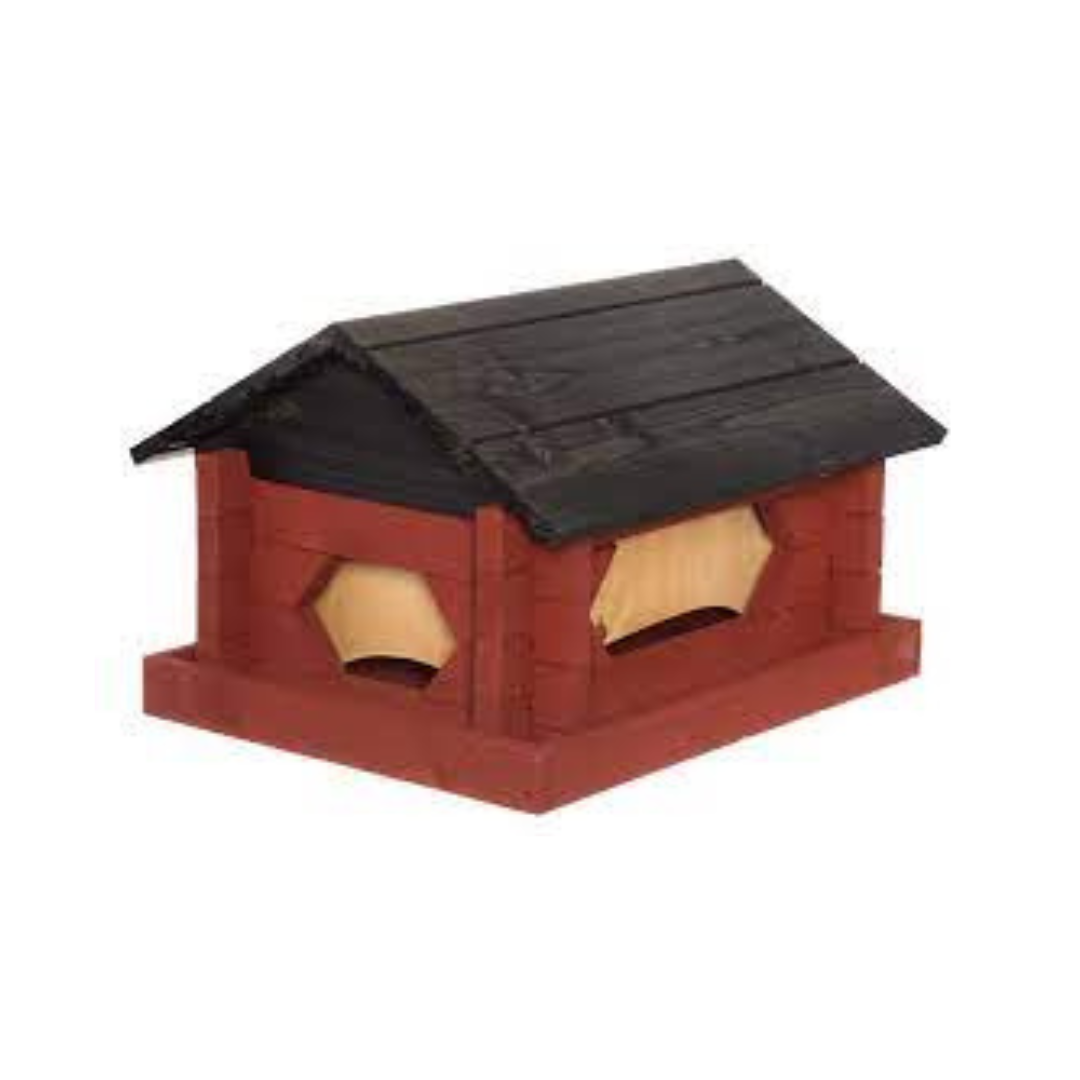Labas kvalitātes koka, dekoratīva un funkcionāla putnu barotava. Augstums 15.5cm, platums 25cm, garums 29cm. Barībai izmanto riekstus, saulespuķes un citas sēklas.