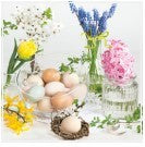 Salvetes Lieldienas Spring Flowers in Glass Vases with Natural Eggs 1pac