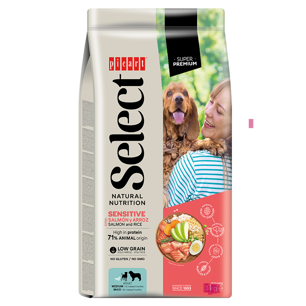 Suņu barība Select Sensitive Superpremium ar lasi un rīsiem 12kg