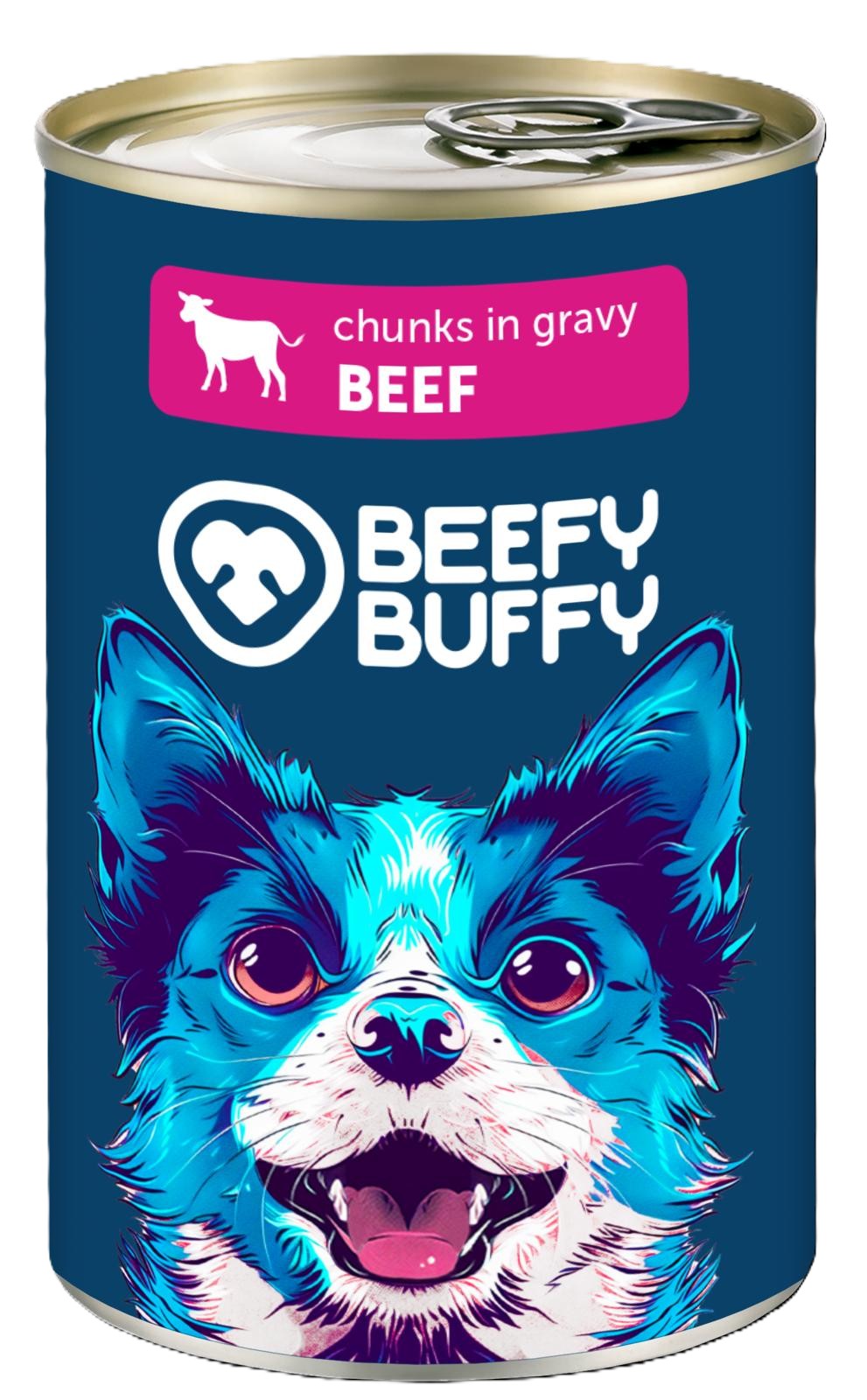 Suņu konservi pieaugušiem suņiem ar liellopu gaļas gabaliņiem mērcē, gaļa 71% 415g