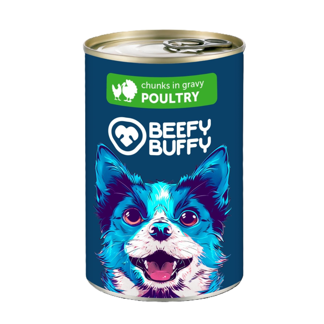 Pilnvērtīga barība pieaugušiem suņiem, kas piedāvā gardus un maigus mājputnu gaļas gabaliņus bagātīgā mērcē. Tā satur lielu gaļas daudzumu-71%, nodrošinot pilnvērtīgu un sabalansētu uzturu jūsu sunim.